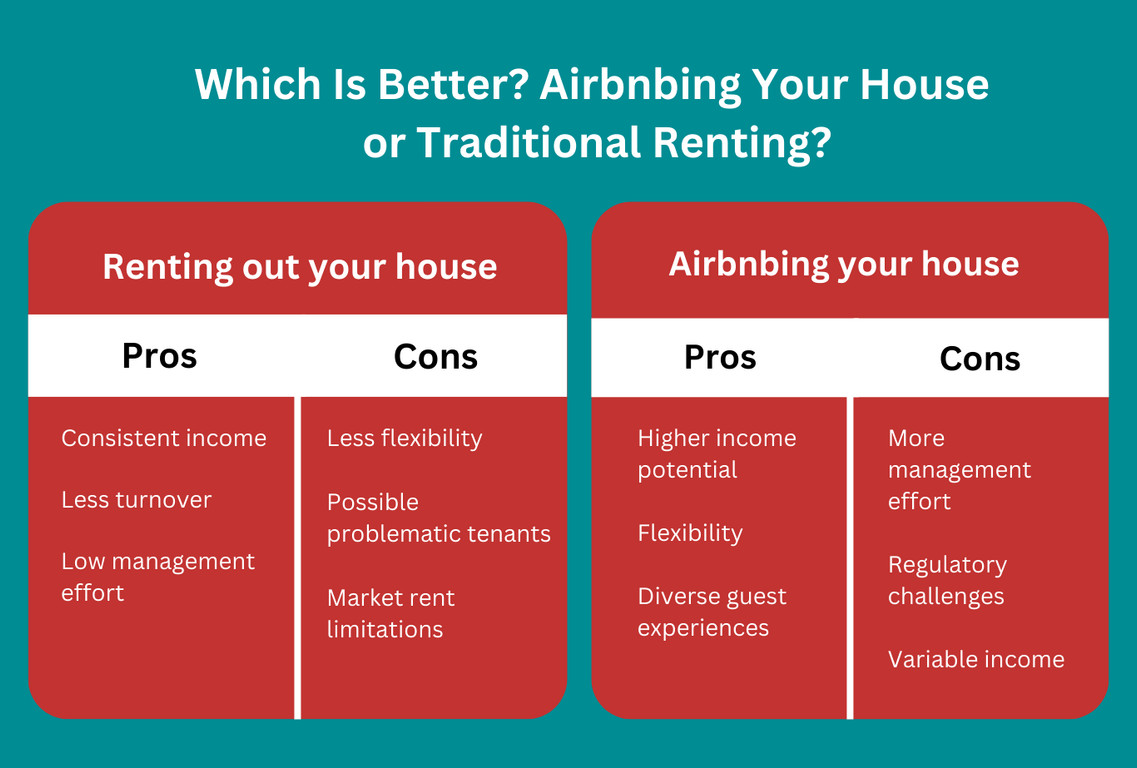 When deciding between listing your property on Airbnb or opting for a traditional rental, it’s essential to weigh the pros and cons of each approach. Whether you’re looking for flexibility, a steady income, or less management hassle, both options come with unique benefits and challenges.